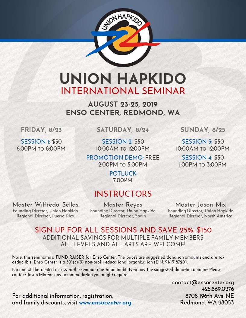 World Union Hapkido International Seminar By pwsadmin | August 1, 2019 We were honored that founding members of World Union Hapkido, Master Sellas of Puerto Rico, Master Reyes of Spain and our own Masters Mix shared their knowledge with us. Posted in Events and tagged Seminars